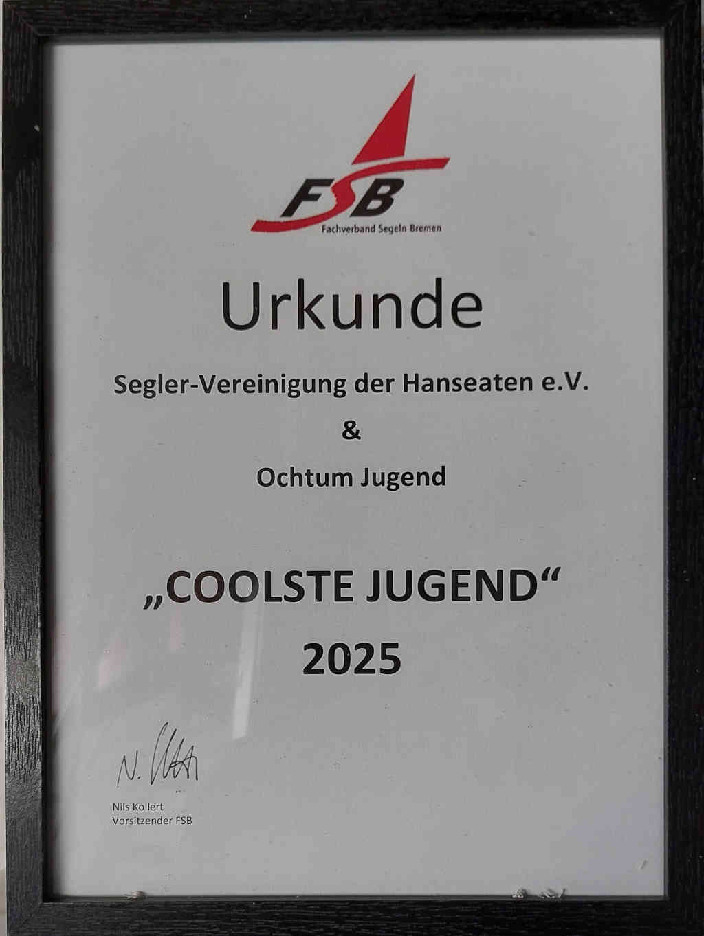 „Unsere“ Ochtumjugend wurde, zusammen mit der Jugend des SVH (Seglervereinigung der Hanseaten) zur „COOLSTEN JUGEND“ gewählt/erkoren/ernannt. Vom FSB (Fachverband Segeln Bremen). Ist das nicht COOL? Wir gratulieren allen COOLen Jugendlichen und natürlich den COOLen Trainerinnen und Trainern! Ein paar der Jugendlichen fühlten sich motiviert, eine Bewerbung zu schreiben. Und die war offenbar überzeugend. Von dem… COOL! weiterlesen