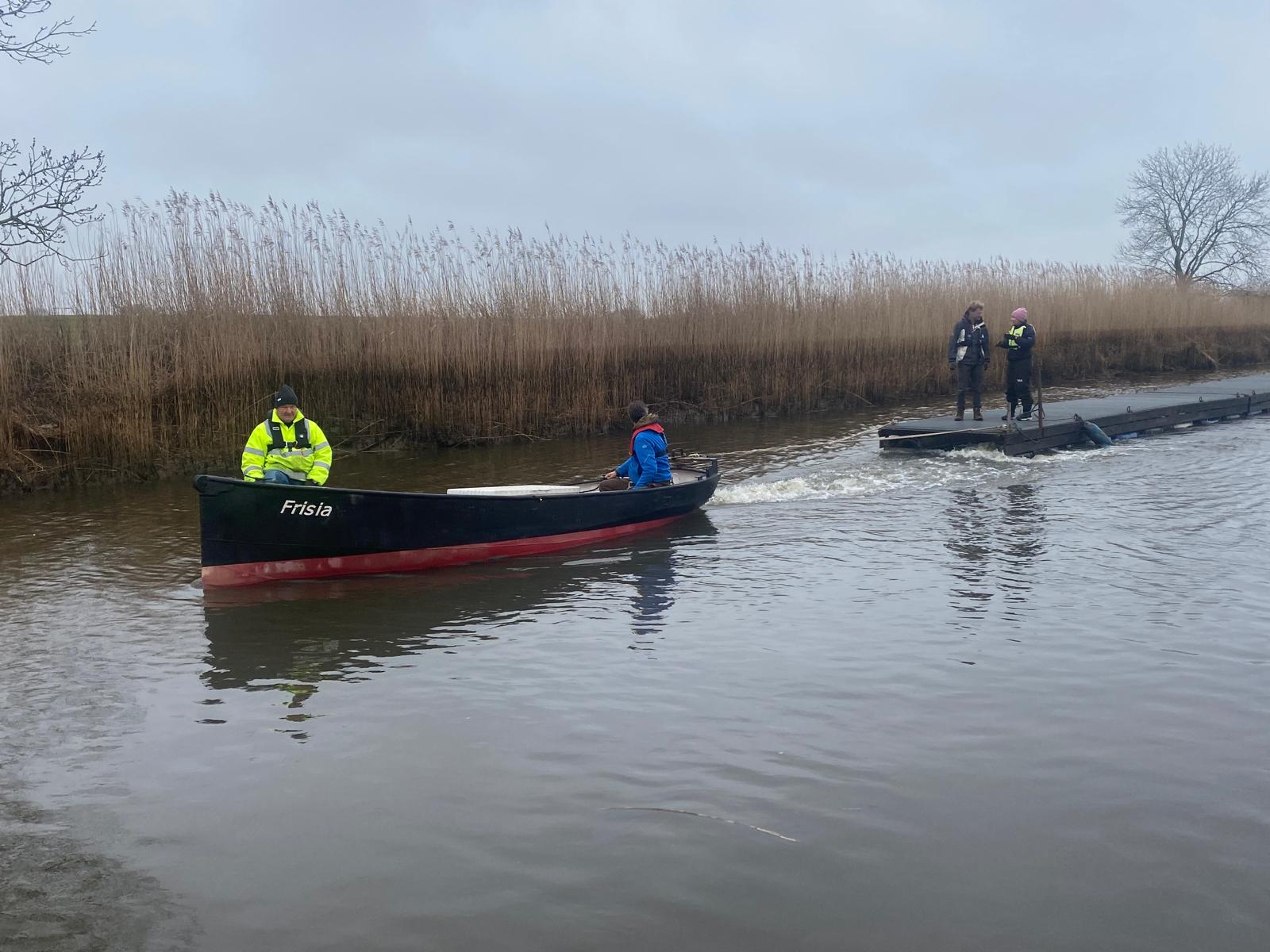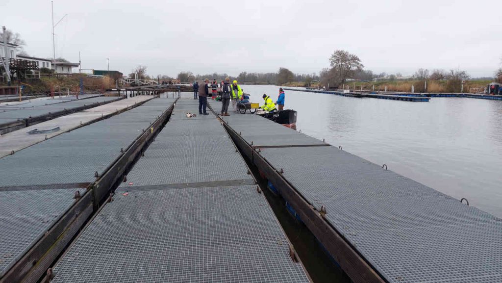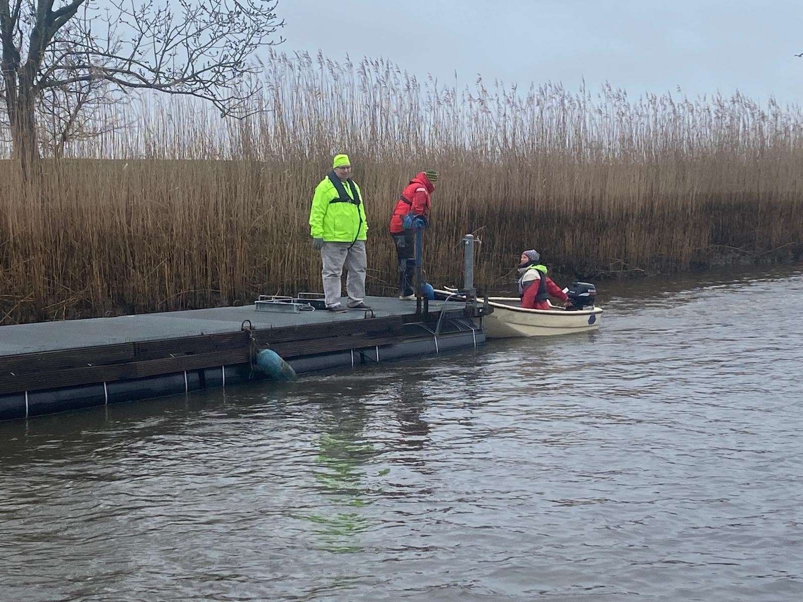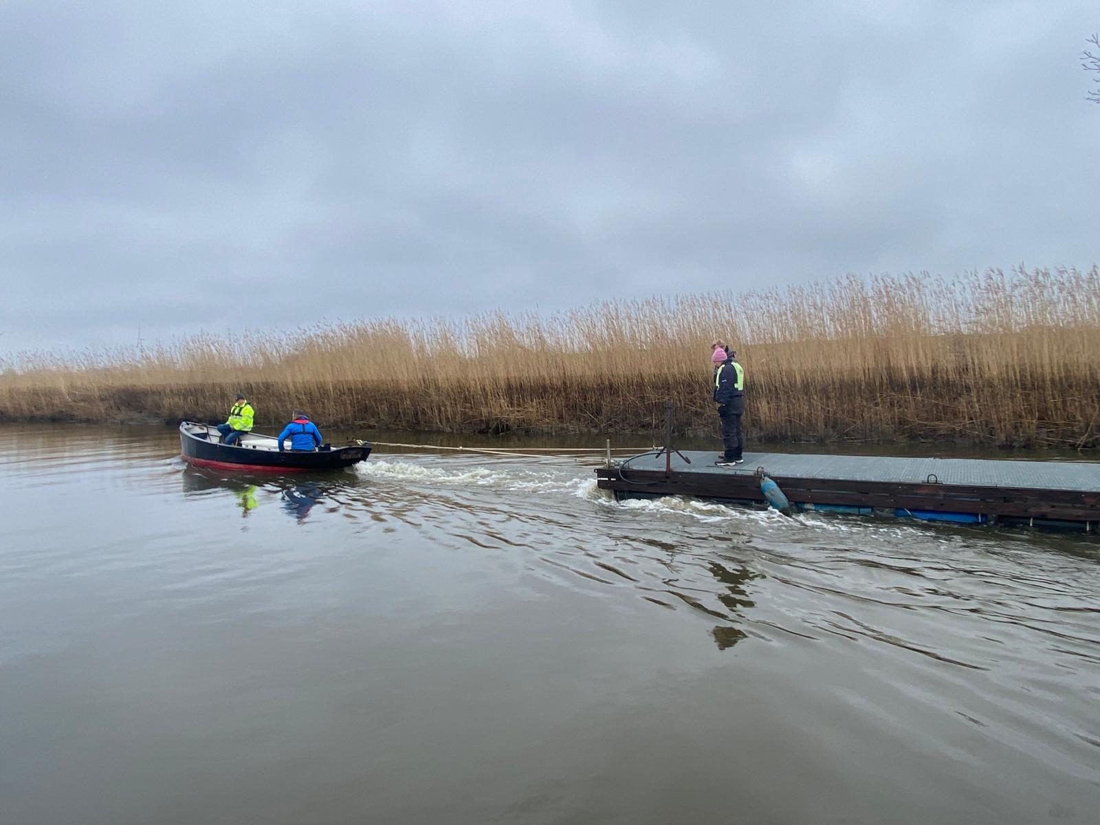 Die Stege kommen also, wie jedes Jahr, vom strömungsfreien Altarm, wo sie nicht durch Eis gefährdet werden können, in den Durchstich.